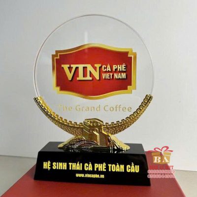 • Xu hướng kết hợp nhiều chất liệu tạo nên sự đẳng cấp và khác biệt. Phần đế gỗ hoặc kim loại màu vàng/bạc tăng thêm độ nặng và tính trang trọng cho chiếc cúp.