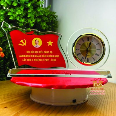 • Đồng hồ pha lê biểu trưng cờ đỏ sao vàng – tượng trưng cho sự trường tồn, bền vững, phù hợp để tri ân các đơn vị quân đội, công an, cựu chiến binh.