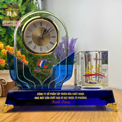 - Đa dạng mẫu mã: Từ đồng hồ pha lê, kỷ niệm chương đến quả cầu phong thủy.