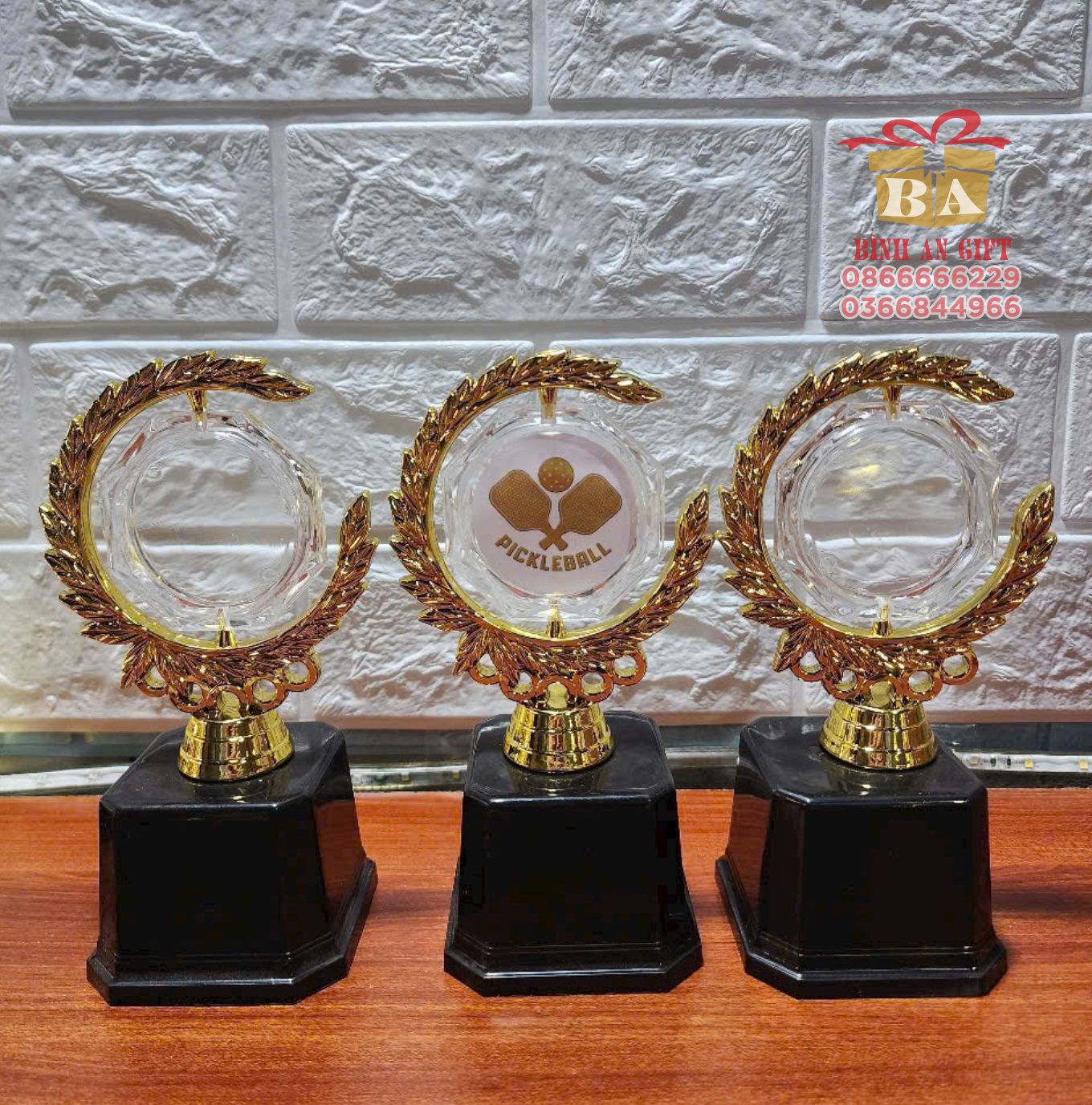 Cúp pickleball pha lê viền nguyệt quế vàng là thiết kế đặc biệt được Quà Tặng Bình An mang đến cho những giải đấu thể thao mang tính giao lưu – đoàn kết – bứt phá. Với sự kết hợp giữa chất liệu pha lê trong suốt và kim loại mạ vàng cao cấp, mẫu cúp này mang trong mình vẻ đẹp trang nhã nhưng đầy khí chất chiến binh.