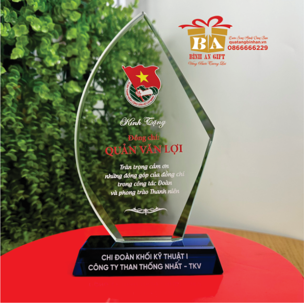 - Thân cúp được làm từ pha lê cao cấp kết hợp mica in màu nghệ thuật, mang lại vẻ sang trọng hiện đại.