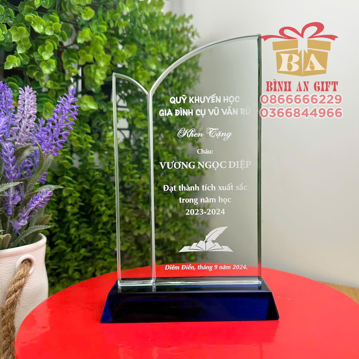 Sản phẩm được thiết kế trang nhã và trang trọng, dùng để khen tặng học sinh có thành tích xuất sắc trong năm học, thể hiện sự ghi nhận, động viên tinh thần hiếu học từ gia đình, nhà trường hoặc các quỹ khuyến học.