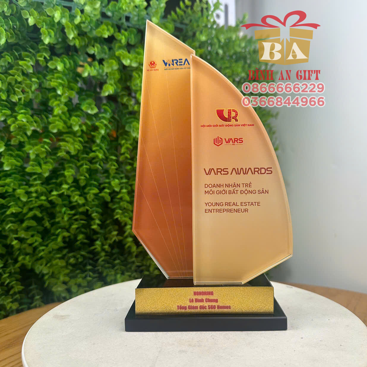 Danh hiệu: Doanh nhân trẻ môi giới BĐS – Young Real Estate Entrepreneur - Đế vuông chắc chắn, chất liệu pha lê cao cấp mang đến cảm giác sang trọng và uy tín.