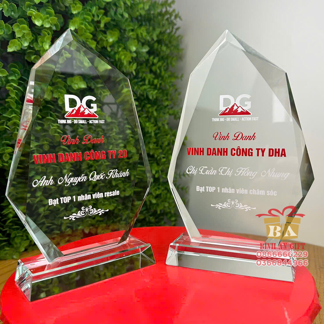 🏆 Kỷ Niệm Chương Pha Lê Vinh Danh Nhân Viên – Thiết Kế Đỉnh Cắt Kim Cương
