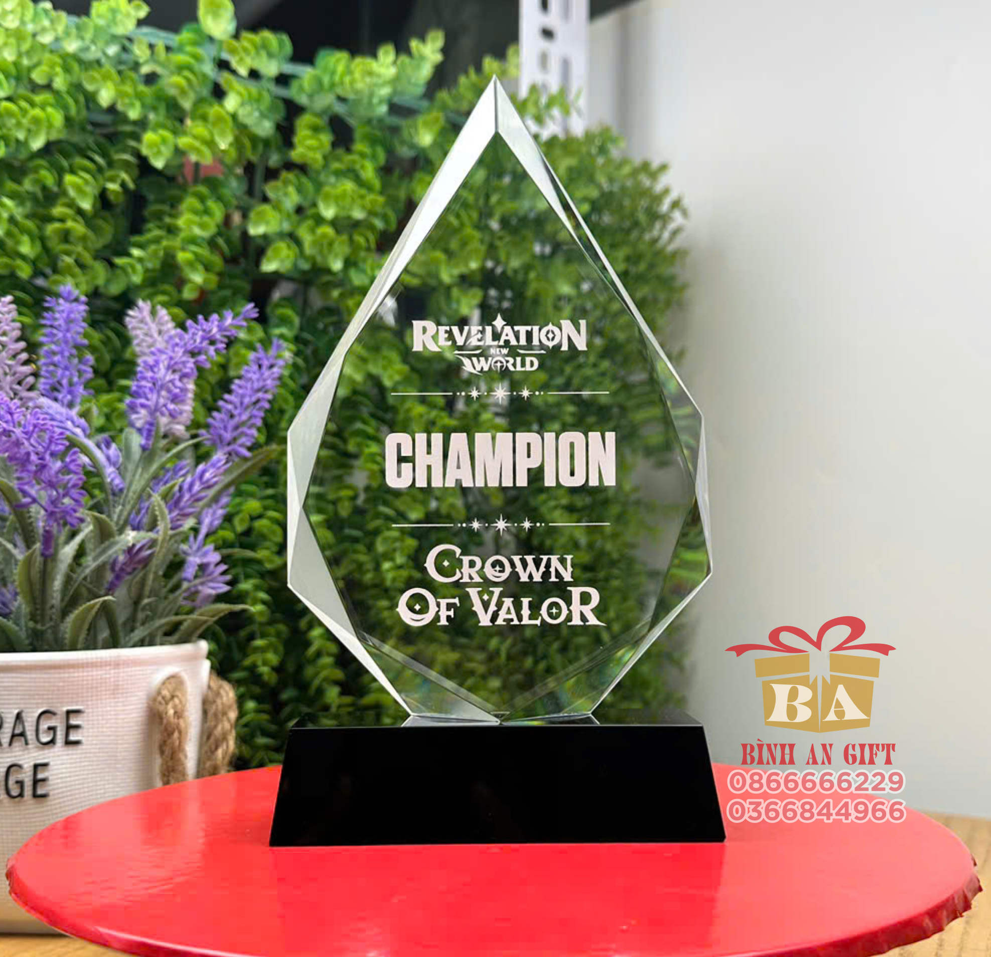 Chiếc cúp pha lê hình giọt nước được Quà Tặng Bình An thiết kế dành riêng cho những nhà vô địch, đội nhóm và cá nhân xuất sắc, mang biểu tượng của sức mạnh, bản lĩnh và tinh thần chinh phục đỉnh cao.
