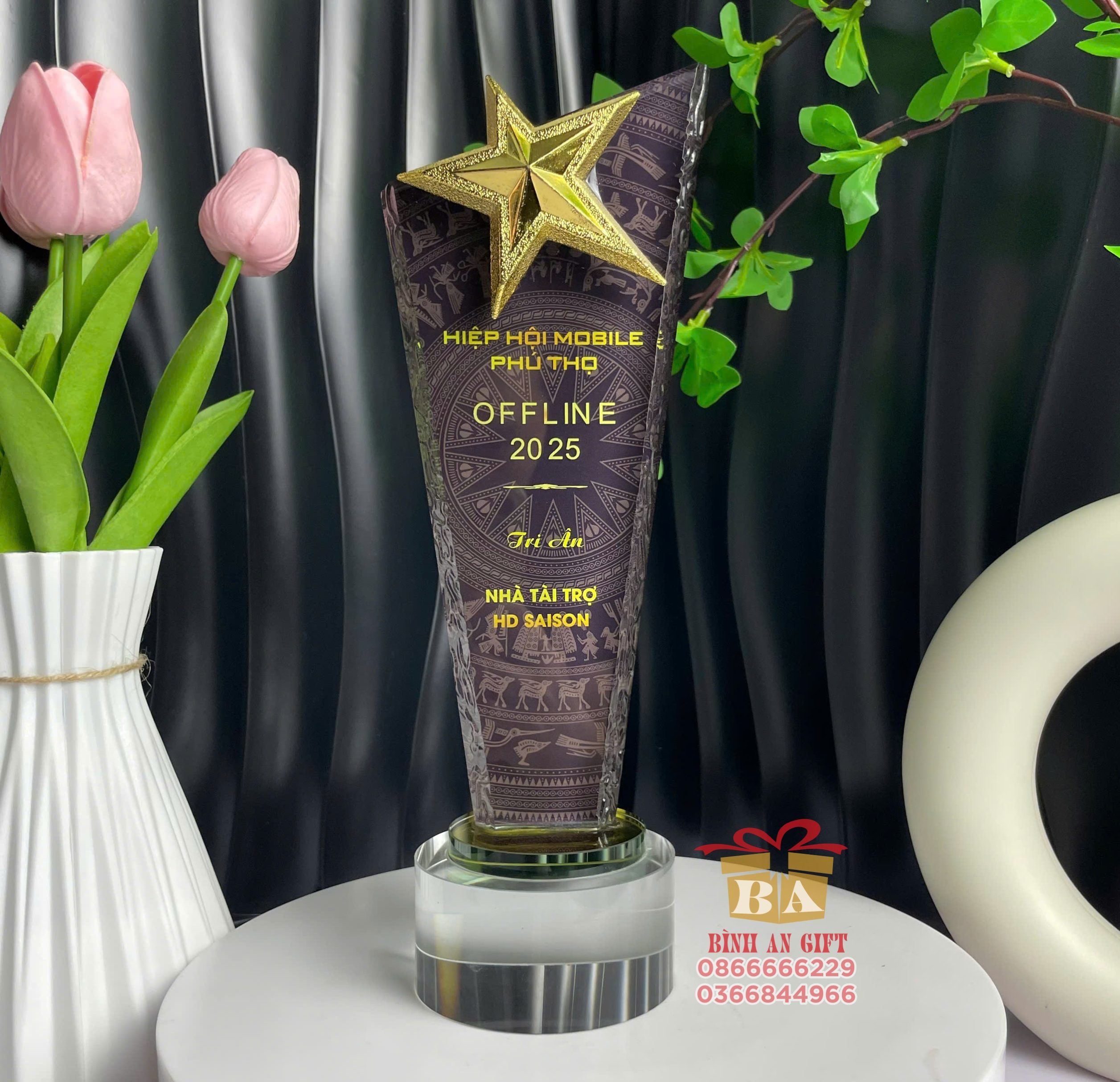 Chiếc cúp pha lê ngôi sao được Quà Tặng Bình An thiết kế riêng cho chương trình Offline Hiệp hội Mobile Phú Thọ 2025, là biểu trưng của lòng tri ân, tinh thần cống hiến và sự đồng hành đáng quý của các đơn vị tài trợ, đối tác.