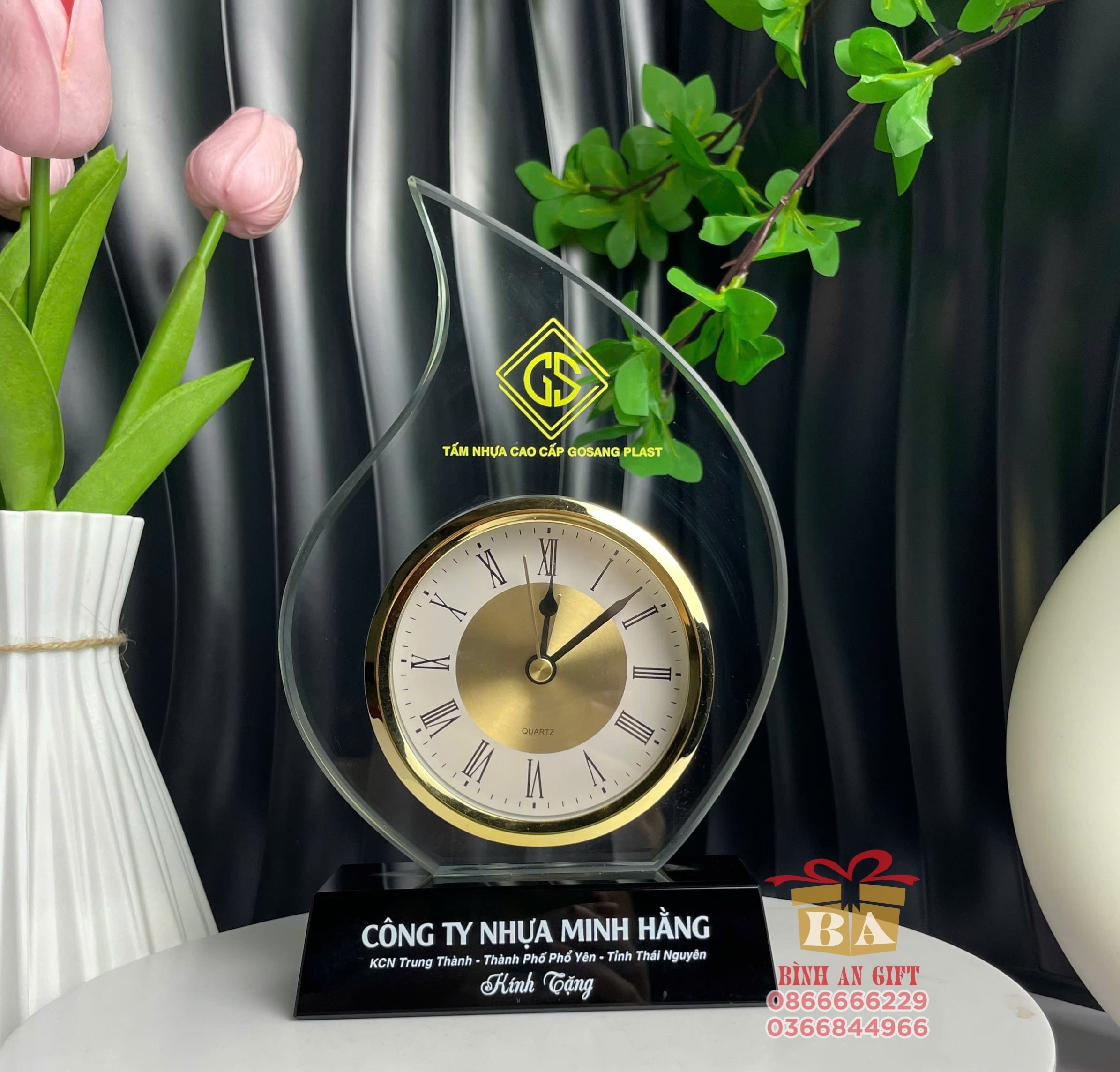 Đồng hồ pha lê để bàn hình giọt nước – Khắc logo theo yêu cầu PLĐB02