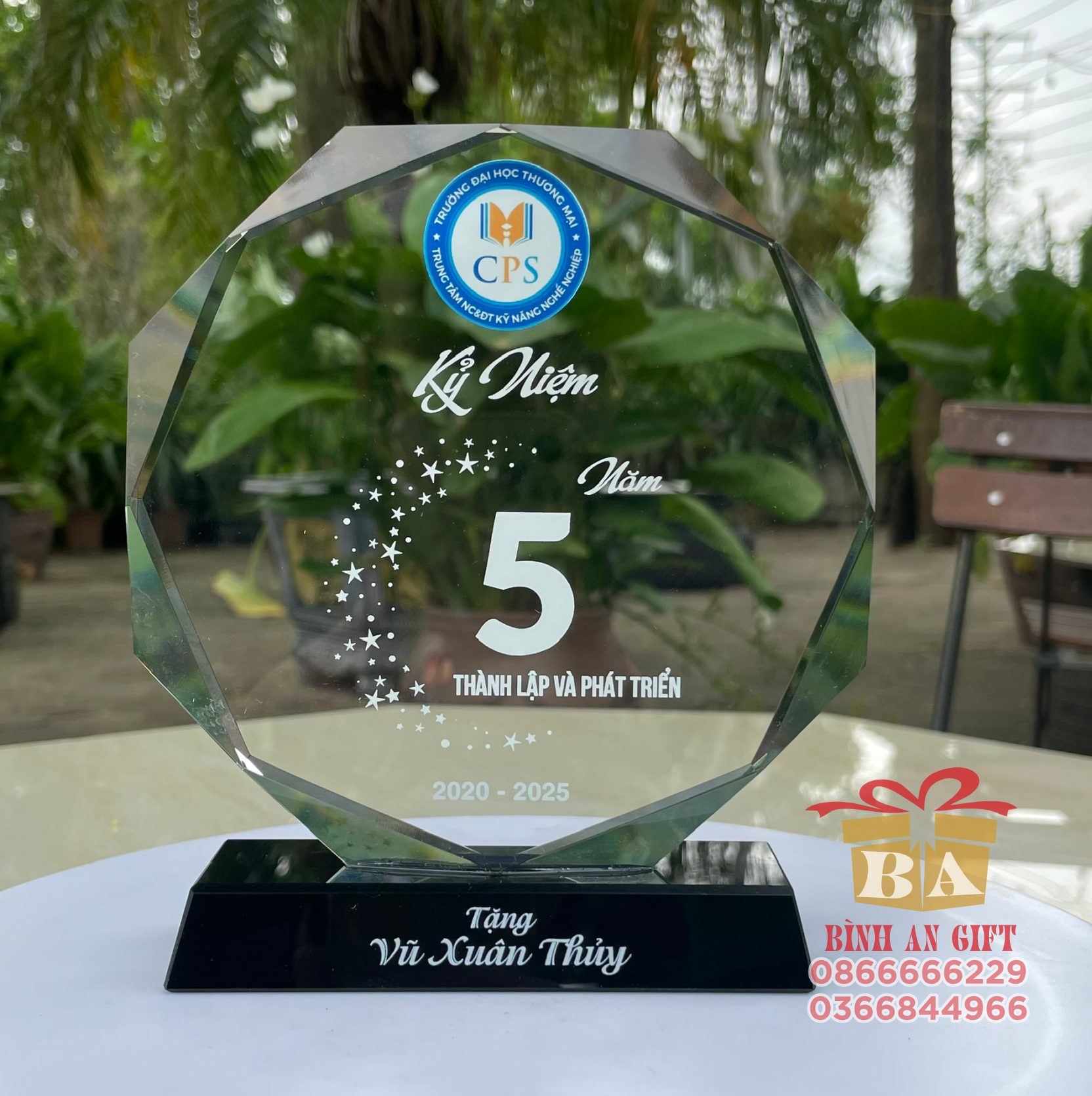 Mỗi cột mốc quan trọng trong hành trình xây dựng và phát triển đều cần được ghi dấu bằng một biểu trưng xứng đáng. Chiếc kỷ niệm chương pha lê 5 năm được Quà Tặng Bình An chế tác tỉ mỉ, là món quà ý nghĩa để tôn vinh tập thể, cá nhân đã đồng hành trong suốt chặng đường vừa qua.
