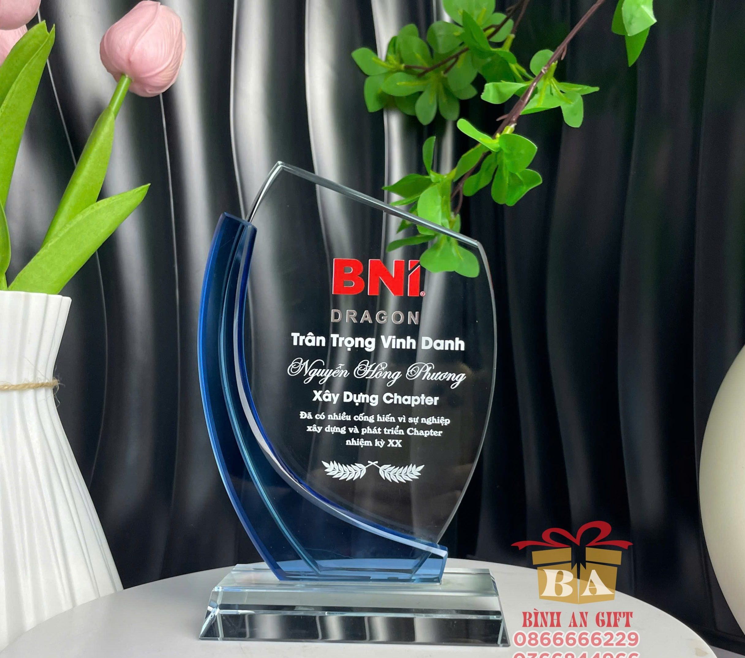 Chiếc cúp pha lê BNI Dragon là món quà vinh danh cao cấp, được Quà Tặng Bình An chế tác dành riêng cho doanh nhân, lãnh đạo, thành viên xuất sắc của các Chapter BNI. Thiết kế hiện đại, sang trọng, tượng trưng cho tinh thần kết nối, phát triển và cống hiến không ngừng.
