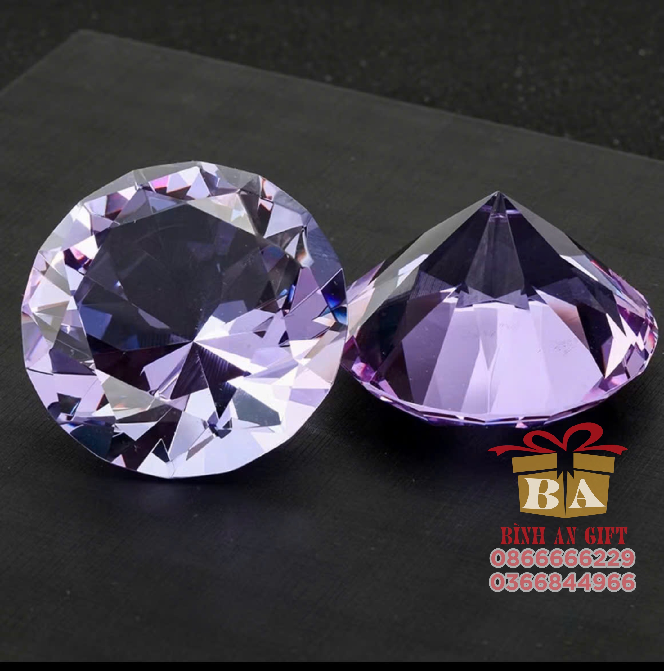 Viên pha lê hình kim cương tím mang vẻ đẹp lấp lánh, sang trọng và quyền quý. Với thiết kế chuẩn giác cắt đa diện, sản phẩm phản chiếu ánh sáng rực rỡ, tạo nên sự cuốn hút đặc biệt khi trưng bày.