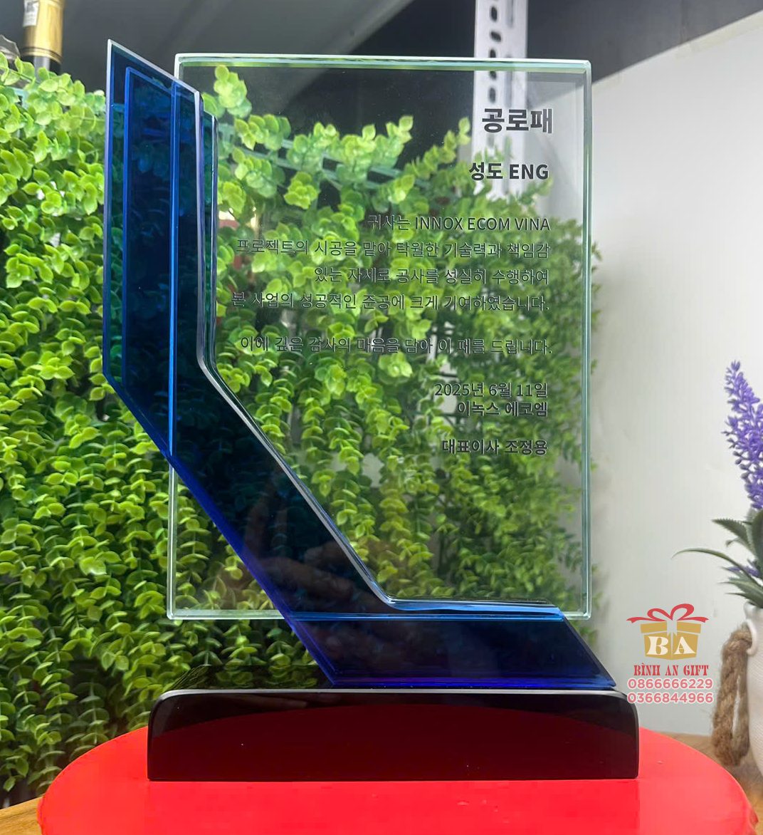 Bảng pha lê vinh danh đối tác BPLVD01